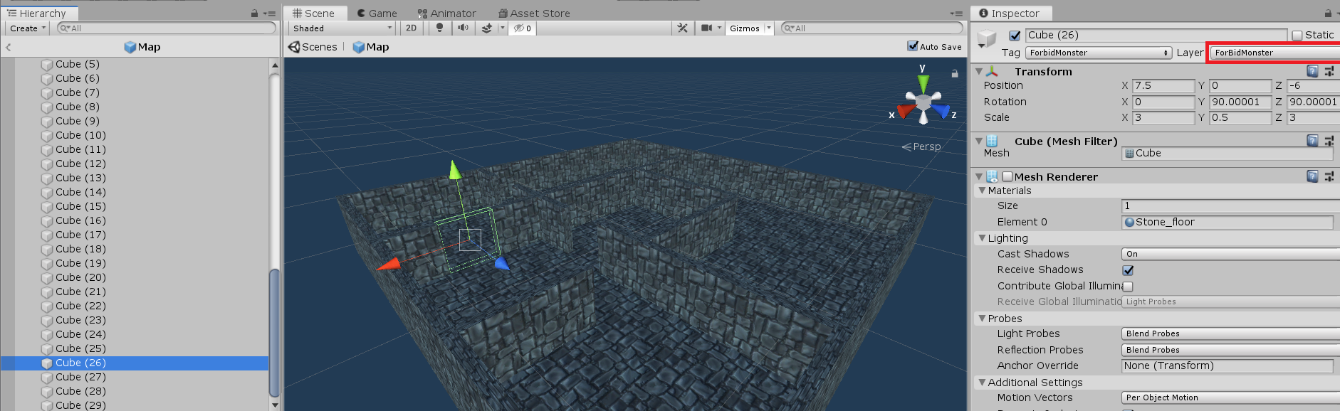 注意为地图设置空气墙,并设置空气墙的Layer,用于限制怪兽活动区域