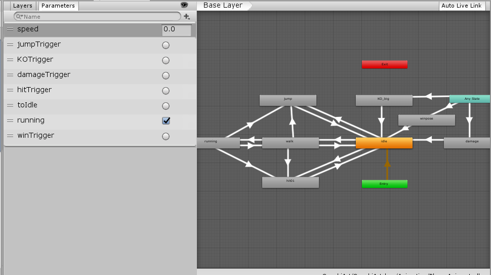 - jumpTrigger、KOTrigger、damageTrigger、hitTrigger、winTrigger分别触发jump、KO_big、damage、hit01、winpose状态